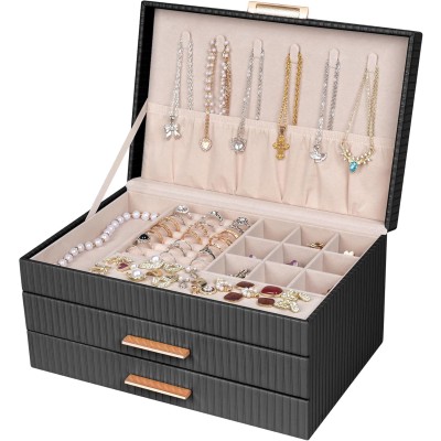 Dajasan Jewellery Box, Large Jewellery Storage, 3 Tier Jewellery Box, Jewellery Organiser with 2 Drawers for Rings