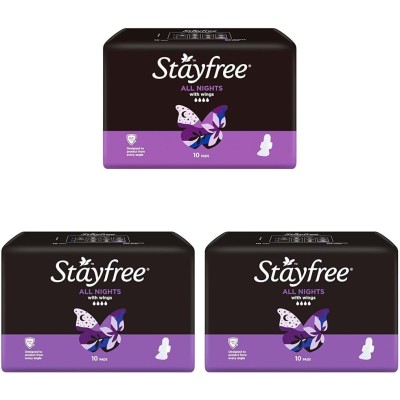 Stayfree All Nights Pads With Wings 30 Pack|Faster Absorption |Keeps Dry and Comfortable