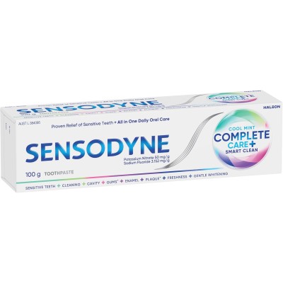 Sensodyne Complete Care + Smart Clean Toothpaste for Sensitive Teeth, Cool Mint, 100g