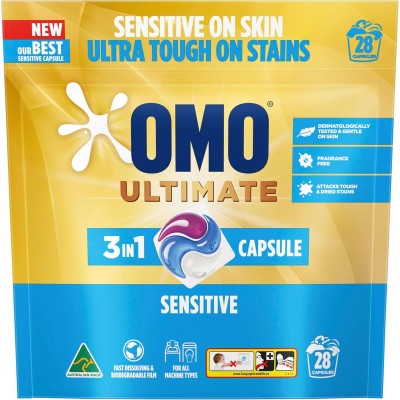 OMO Ultimate Sensitive 3 in 1 Laundry Capsules, 28 Washes