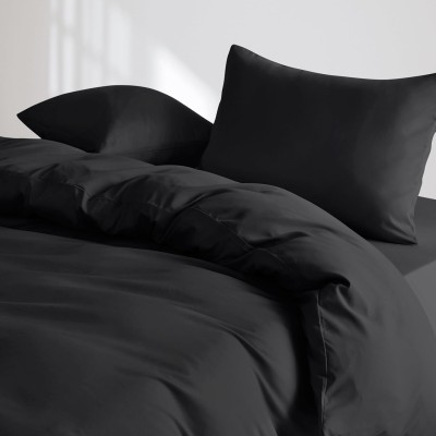 Wake In Cloud - Black Quilt Cover Set, 1000TC Ultra Soft Microfiber Doona Cover Bedding (3pcs, Queen Size)