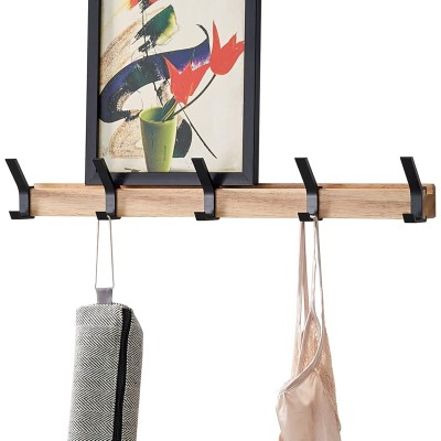 HANLIAN Coat Hanger Wall Mount, Coat Hook Rail for Coat Hat Towel Robes, Wood & Aluminum Entryway Coat
