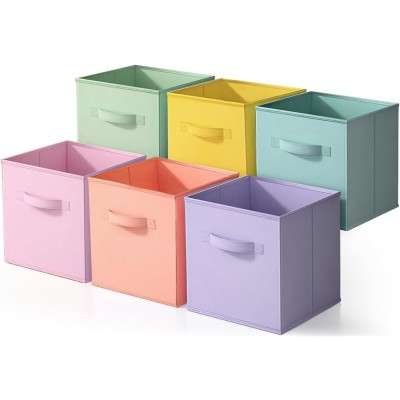 Caunedy 11 Inch Foldable cube storage box,6 Pack Fun Colored Durable Storage Cubes with Handles