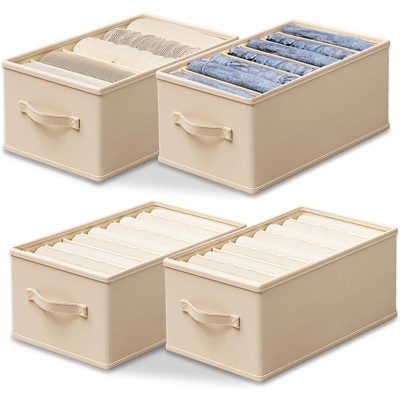 Warmi 4 Pack Wardrobe Clothes Organiser with Compartment, Foldable Clothes Storage Box