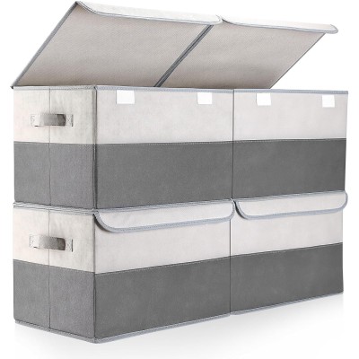 Warmi 4 Pack 29L Foldable Storage Box with Lids & Handles - Large Capacity Basket (L40xW28xH26cm)