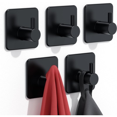 Auxmir Adhesive Wall Hooks Heavy Duty 30LB/14KG(Max) Towel Hooks, 5 Packs Self Adhesive Utility Hooks