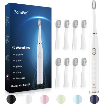 7AM2M Sonic Electric Toothbrush for Adults and Kids- High Power Rechargeable Toothbrushes with 8 Brush Heads