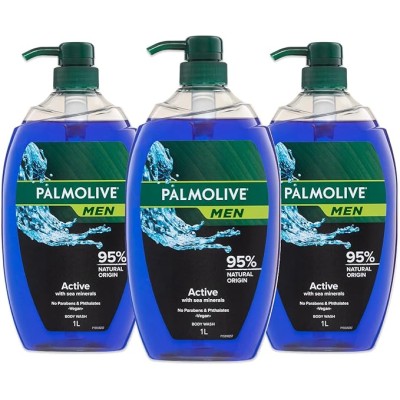 Palmolive Men Body Wash 3L (3x1L), Active with Sea Minerals