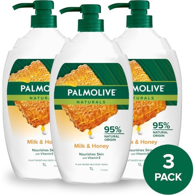Palmolive Naturals Body Wash 3L (3x1L), Soap Free Shower Gel, No Parabens or Phthalates